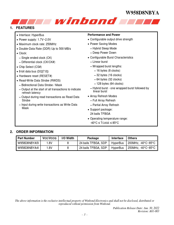 W958D8NBYA Key Features