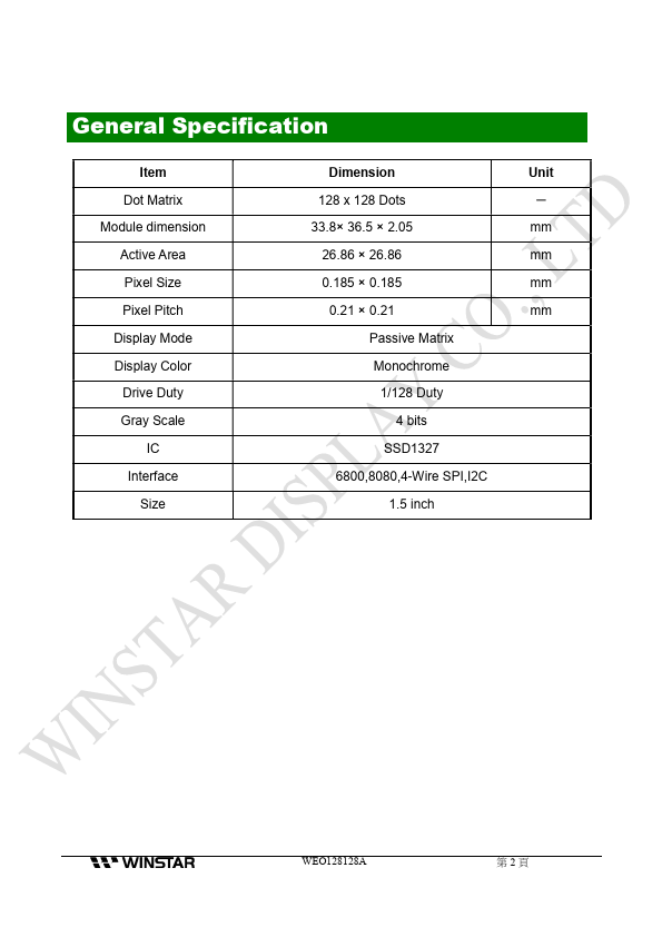 WEO128128A is OLED manufactured by WINSTAR Display .