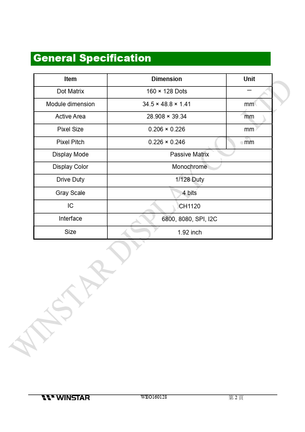 WEO160128B is OLED manufactured by WINSTAR Display .