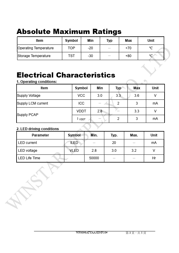 WF0096ATYAA3DNF10 is TFT Display manufactured by WINSTAR Display.