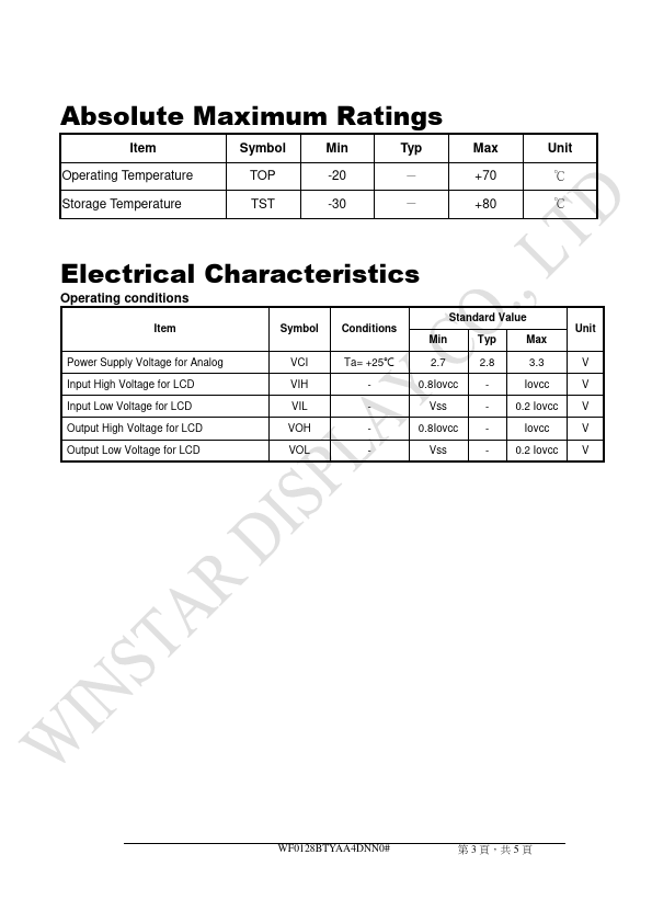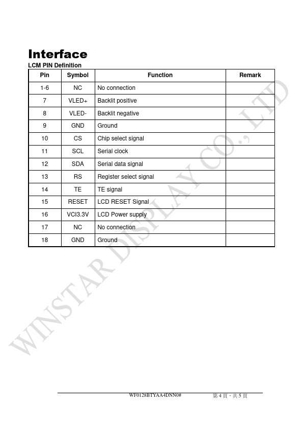 WF0128BTYAA4DNN0 is TFT Display manufactured by WINSTAR Display.
