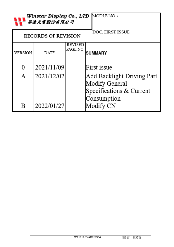 Winstar Display Co., LTD 華凌光電股份有限公司 WEB: https://.winstar..tw E-mail: sales@winstar..tw SPECIFICATION CUSTOMER.