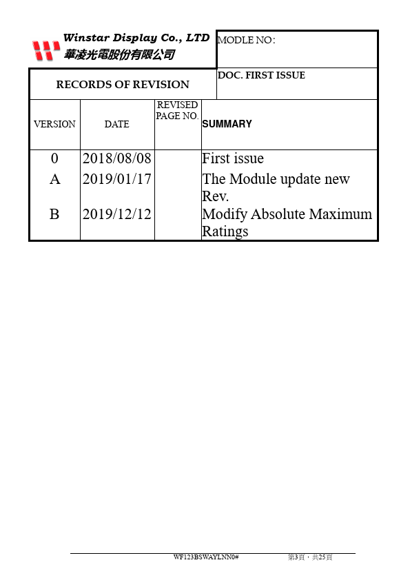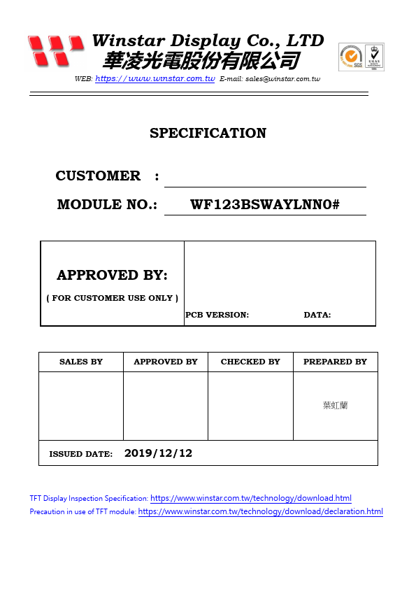 Winstar Display Co., LTD 華凌光電股份有限公司 WEB: https://.winstar..tw E-mail: sales@winstar..tw SPECIFICATION CUSTOMER.
