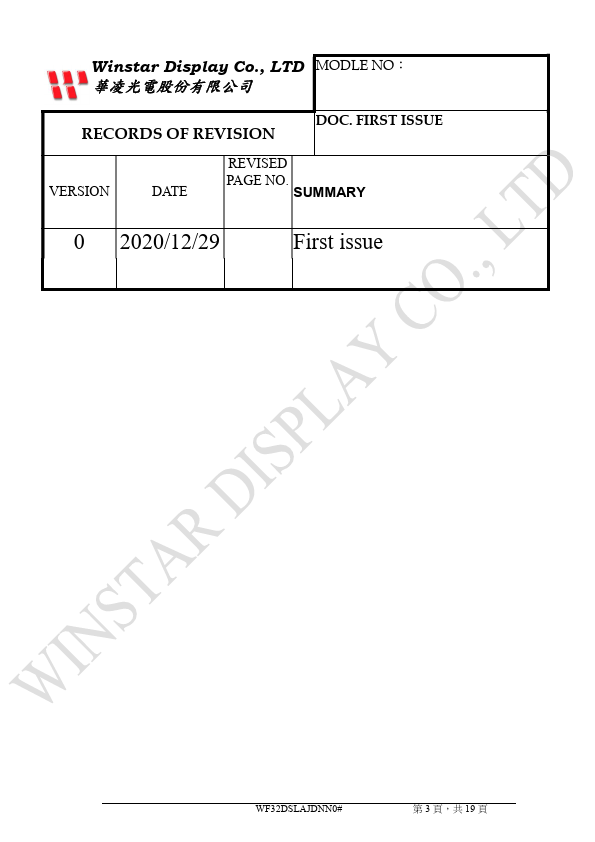 Winstar Display Co., LTD 華凌光電股份有限公司 WEB: https://.winstar..tw E-mail: sales@winstar..tw SPECIFICATION CUSTOMER.
