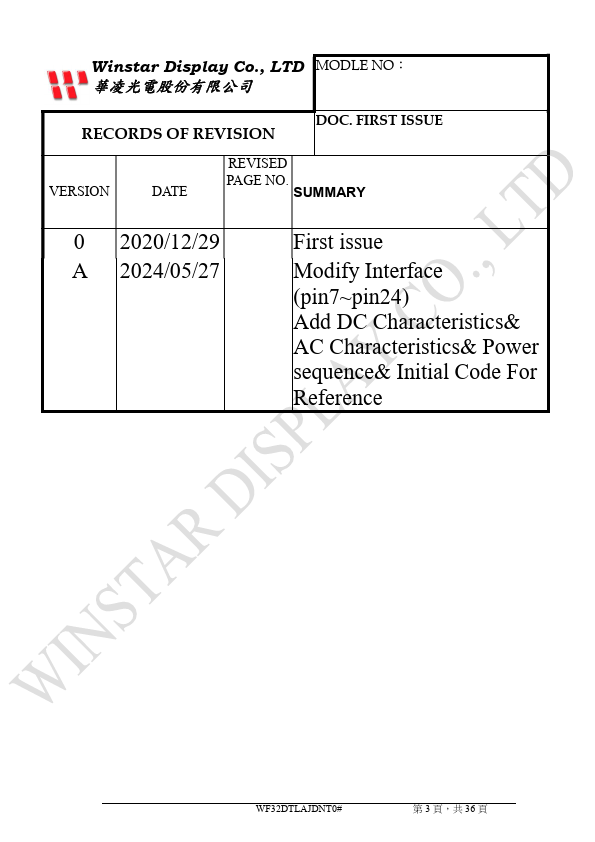 Winstar Display Co., LTD 華凌光電股份有限公司 WEB: https://.winstar..tw E-mail: sales@winstar..tw SPECIFICATION CUSTOMER.