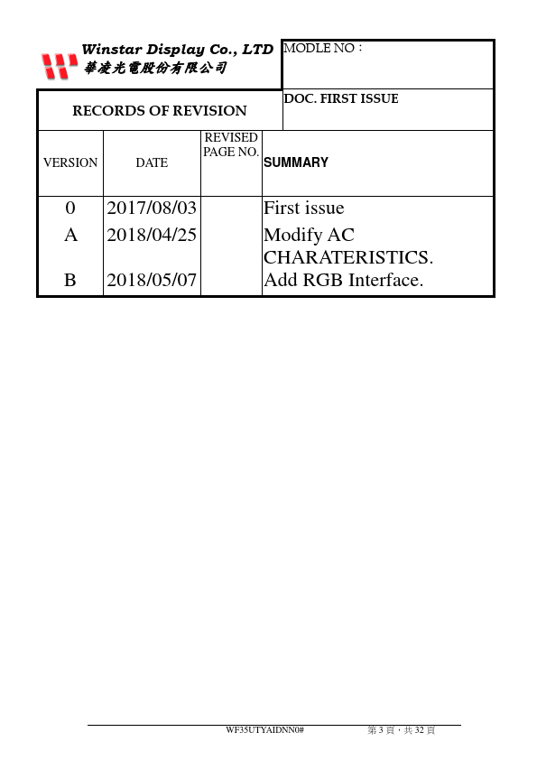 Winstar Display Co., LTD 華凌光電股份有限公司 WEB: https://.winstar..tw E-mail: sales@winstar..tw SPECIFICATION CUSTOMER.