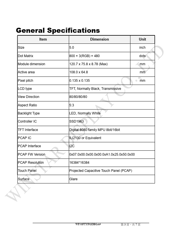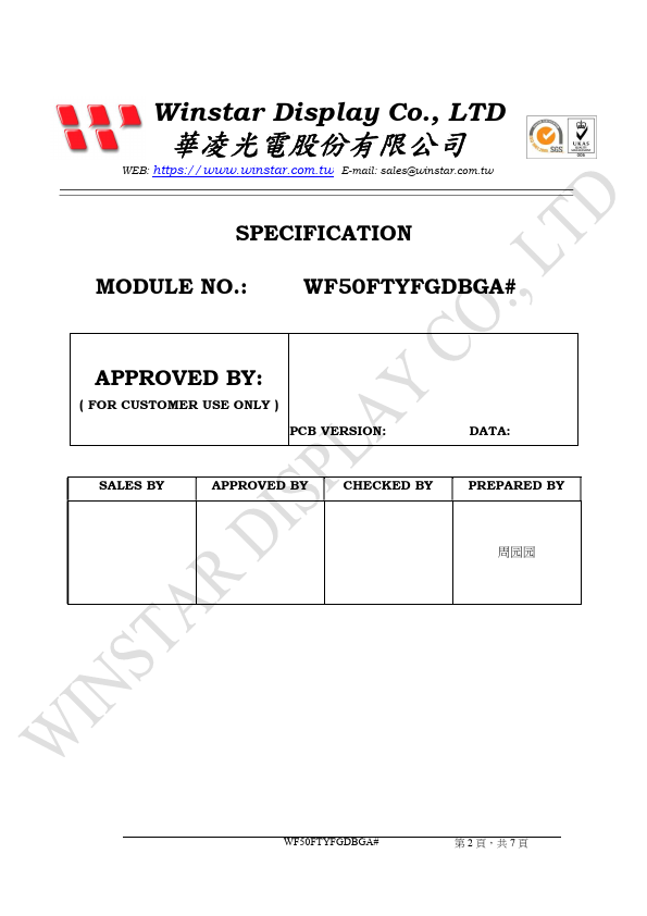 Winstar Display Co., LTD 華凌光電股份有限公司 WEB: https://.winstar..tw E-mail: sales@winstar..tw SPECIFICATION MODULE NO.:.