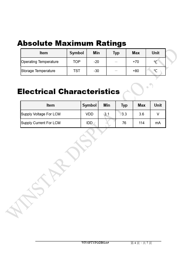 | Manufacturer | WINSTAR Display |