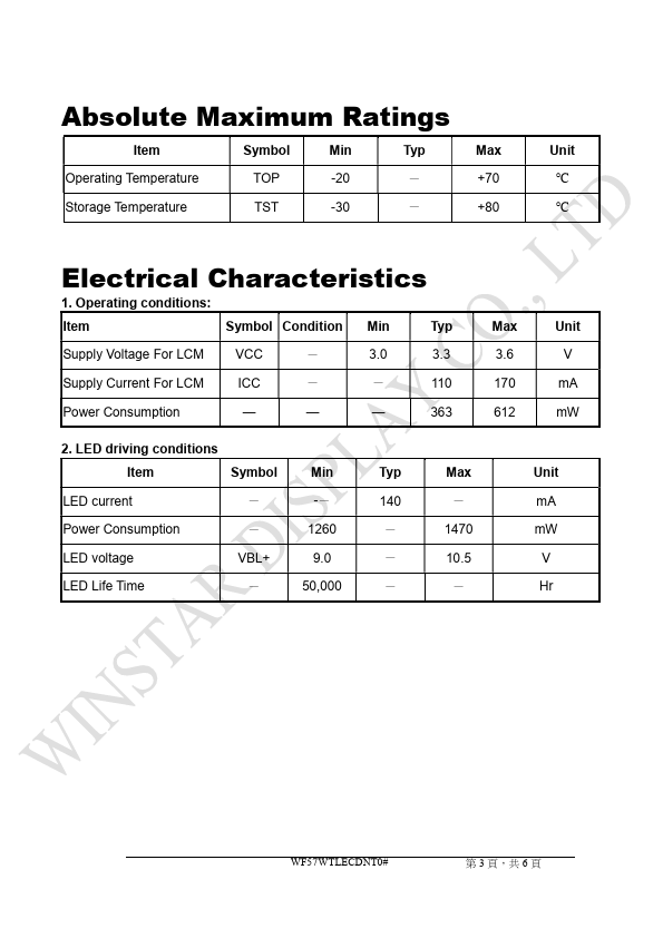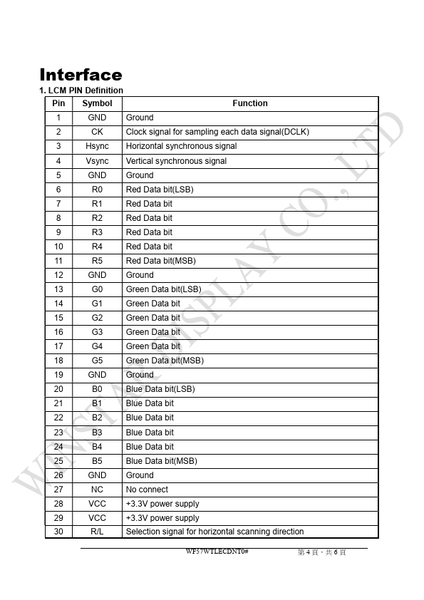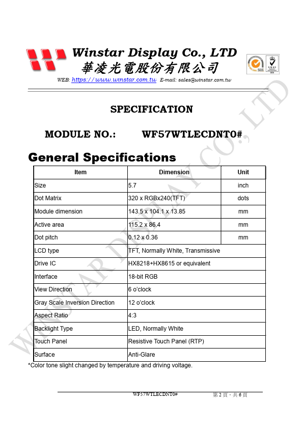WF57WTLECDNT0# 第 5 頁,共 6 頁 Contour Drawing 2.01±0.5 (10.33) 10.50 (11.33) (11.83) TP AA 87.40 FR VA 88.90 TP VA 89.40 TP OD 100.94±0.5 TFT OD 104.10±0.5 95.40±1.0 (71.64) 41 54.70±1.0 TFT AA 86.40 CON2: 33 (FH12-33S-0.5SH) or equivalent 320xBGRx240 1 (14.04).