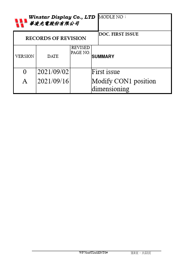 Winstar Display Co., LTD 華凌光電股份有限公司 WEB: https://.winstar..tw E-mail: sales@winstar..tw SPECIFICATION CUSTOMER.