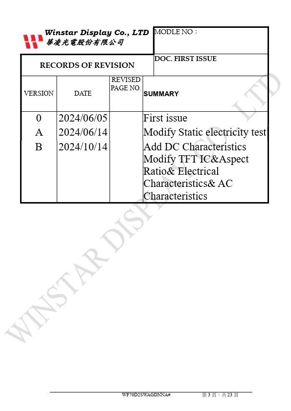 Winstar Display Co., LTD 華凌光電股份有限公司 WEB: https://.winstar..tw E-mail: sales@winstar..tw SPECIFICATION CUSTOMER.
