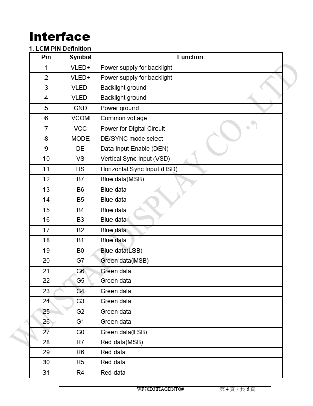 | WF70A6TIAGDNT0 | TFT Display |