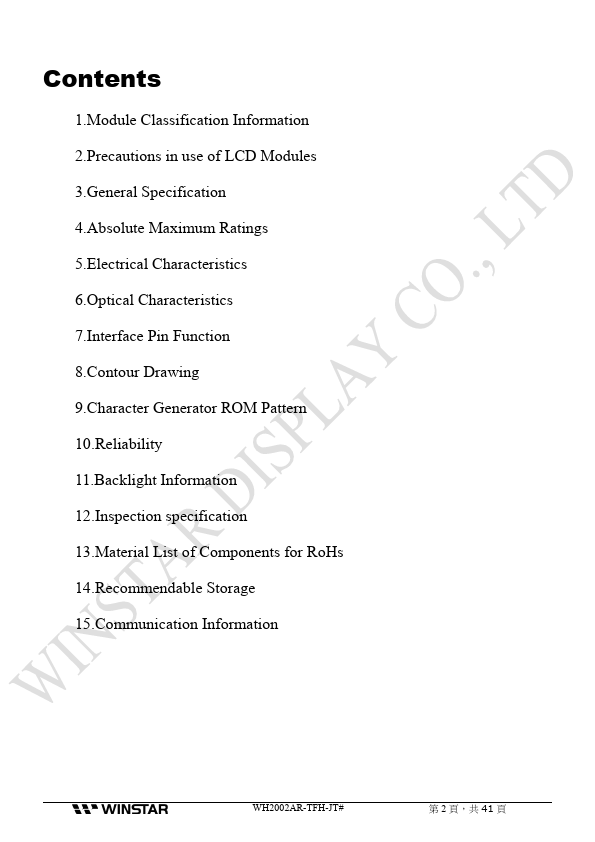 WH2002AR-TFH-JT is LCD Modules manufactured by WINSTAR Display .