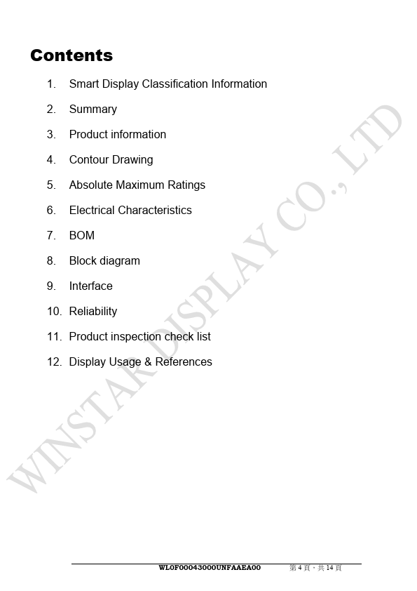 WL0F00043000UNFAAEA00 is Smart Display manufactured by WINSTAR Display .