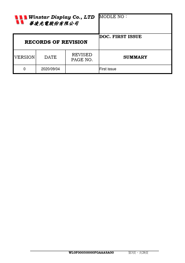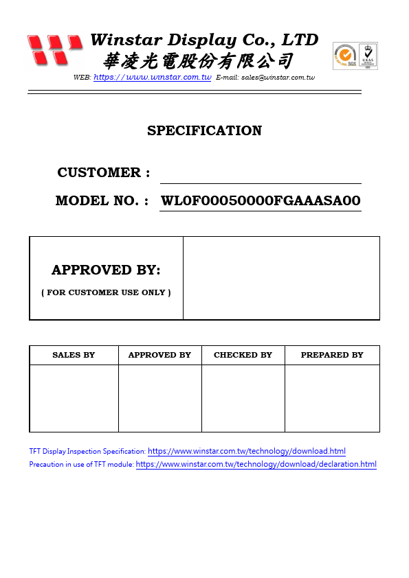 Winstar Display Co., LTD 華凌光電股份有限公司 WEB: https://.winstar..tw E-mail: sales@winstar..tw SPECIFICATION CUSTOMER.