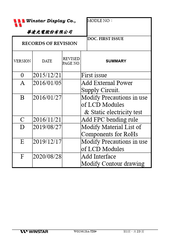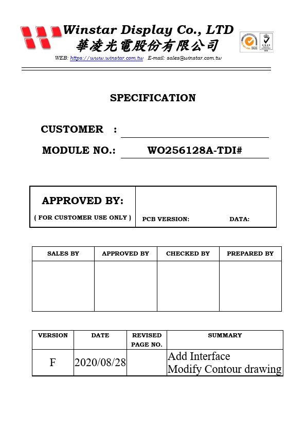 Winstar Display Co., LTD 華凌光電股份有限公司 WEB: https://.winstar..tw E-mail: sales@winstar..tw SPECIFICATION CUSTOMER.