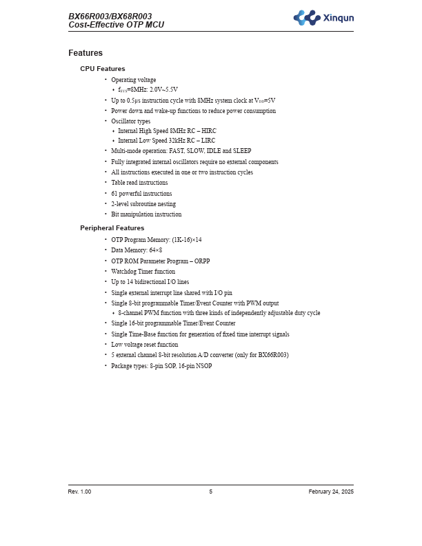 - Internal High Speed 8MHz RC