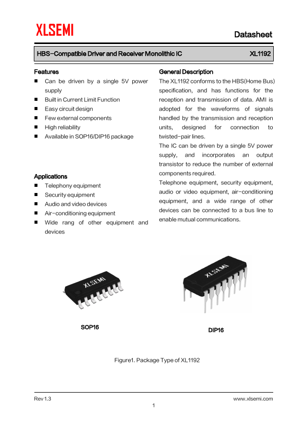 XL1192 is HBS-Compatible Driver and Receiver Monolithic IC manufactured by XLSEMI.
