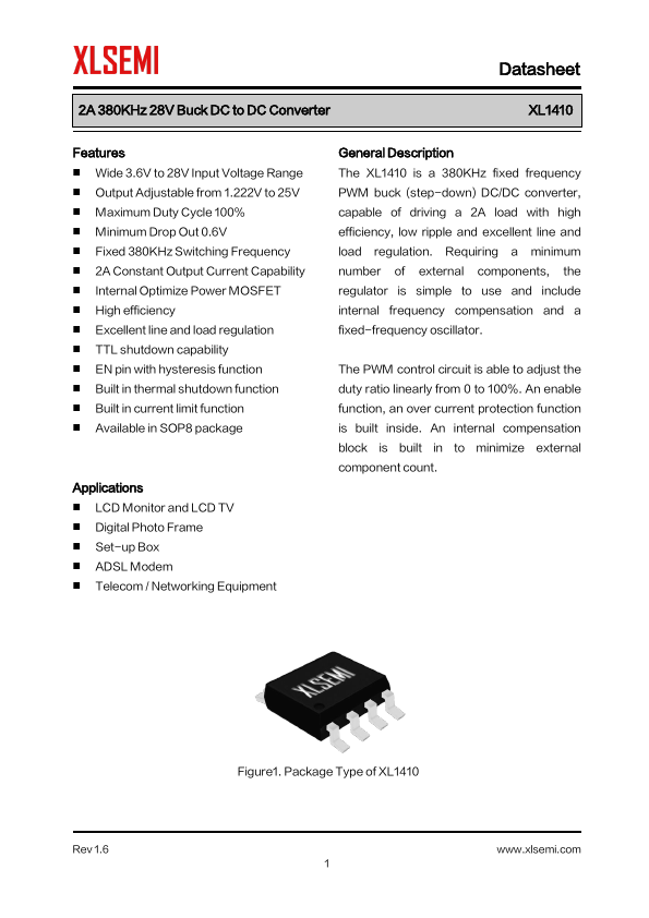 XL1410 is 2A 380KHz 18V Buck DC to DC Converter manufactured by XLSEMI.