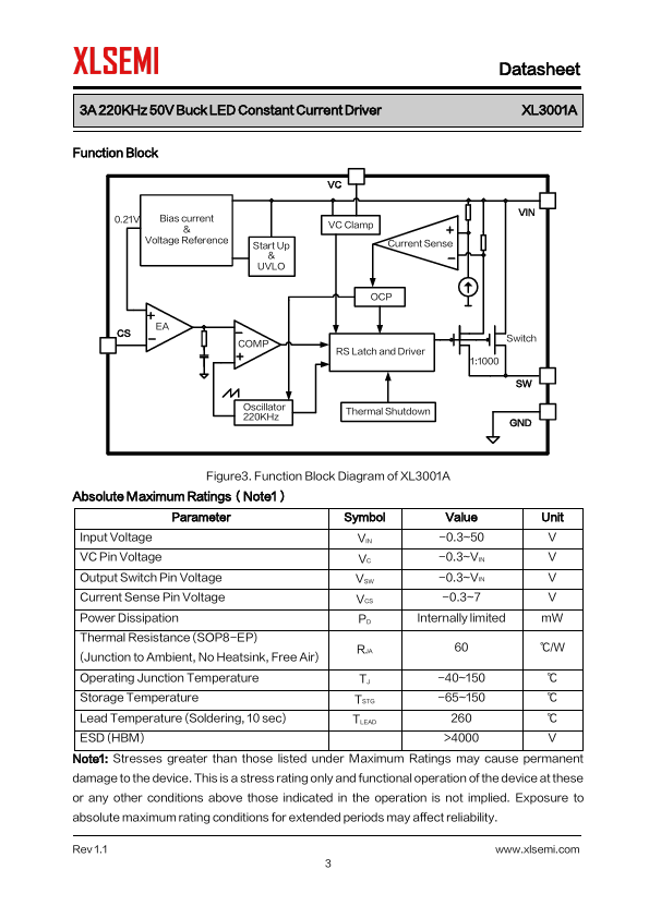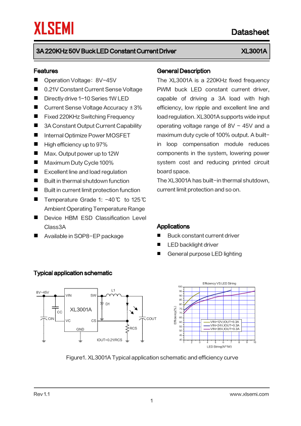3A 220KHz 50V Buck LED Constant Current Driver