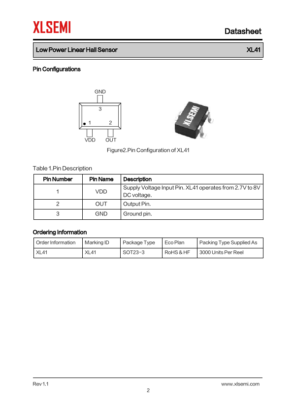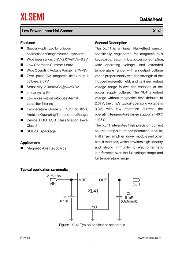 General Description The XL41 is a linear Hall-effect sensor specifically engineered for magnetic axis keyboards,...