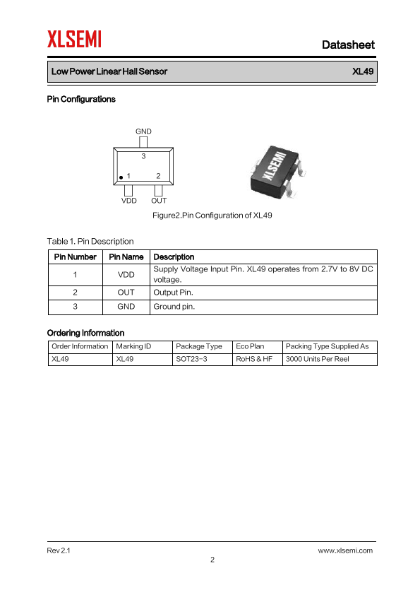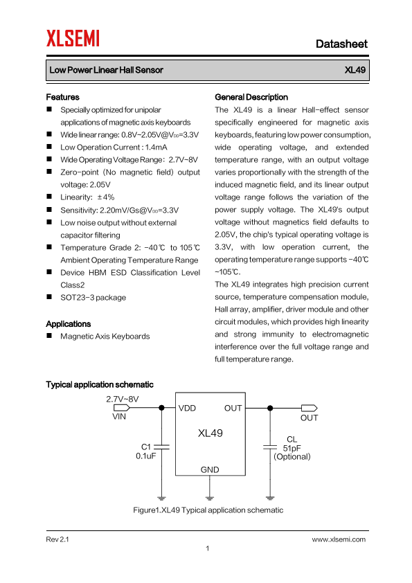 General Description The XL49 is a linear Hall-effect sensor specifically engineered for magnetic axis keyboards,...