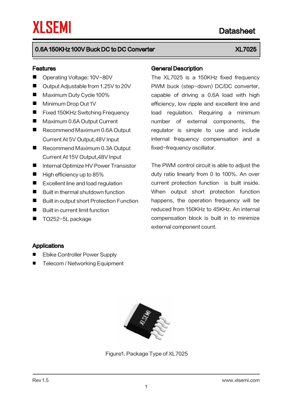 XL7025 is 0.6A 150KHz 100V Buck DC to DC Converter manufactured by XLSEMI.