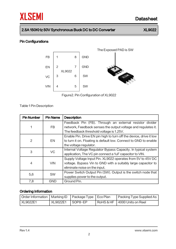 - EN PIN TTL shutdown capability