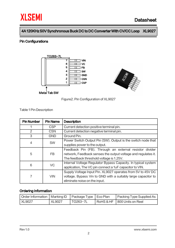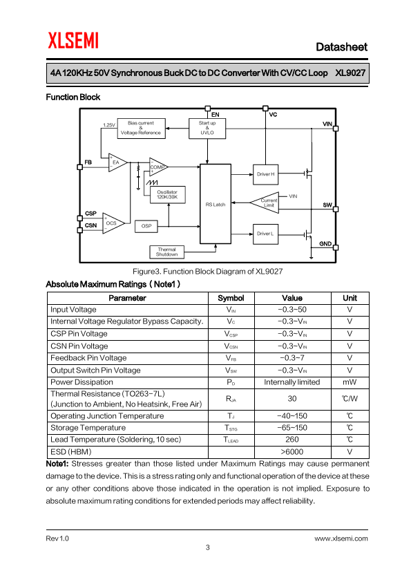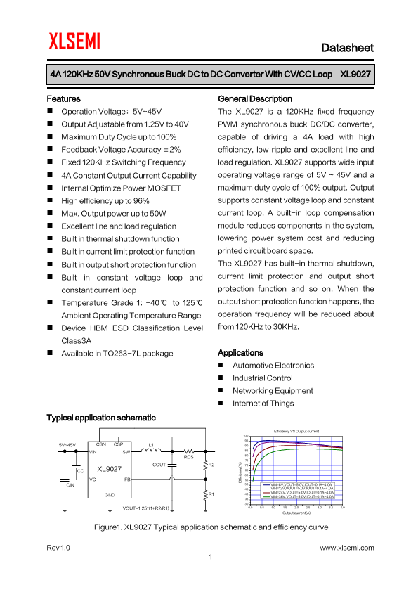 4A 120KHz 50V Synchronous Buck DC to DC Converter With CV/CC Loop XL9027
