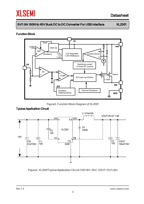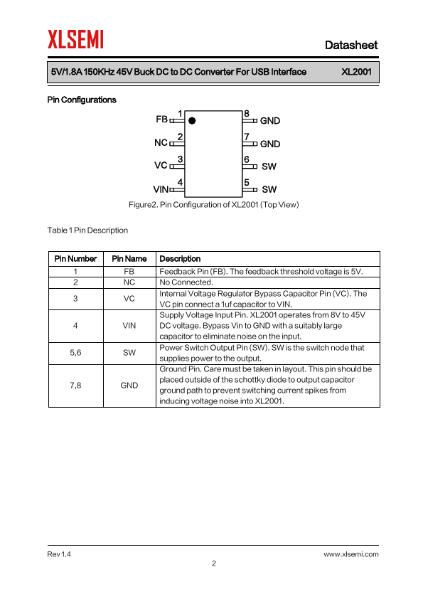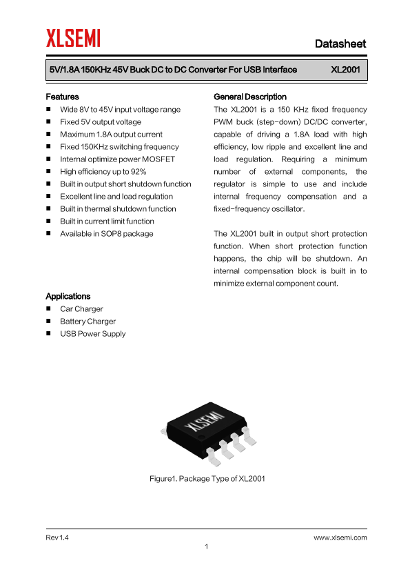 General Description The XL2001 is a 150 KHz fixed frequency PWM buck (step-down) DC/DC converter, capable of driving a 1.8A load with high efficiency, low ripple and excellent...