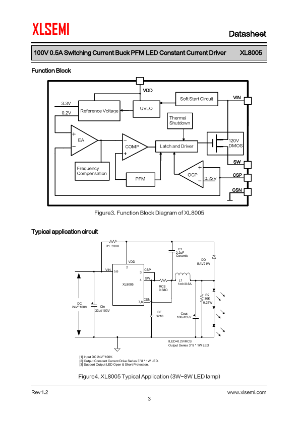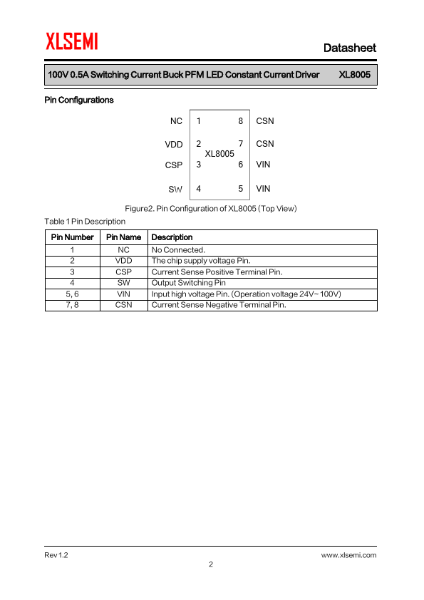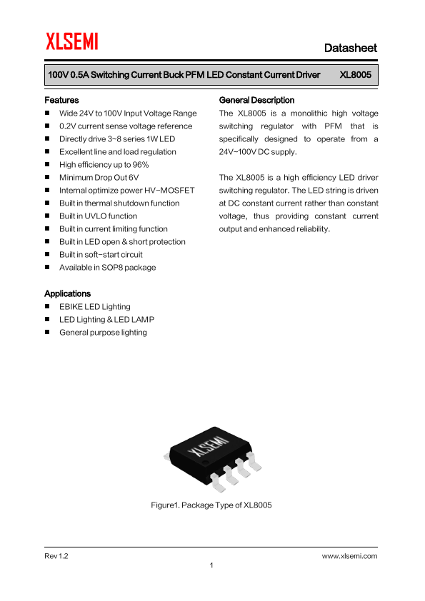 General Description The XL8005 is a monolithic high voltage switching regulator with PFM that is specifically designed to operate from a 24V~100V DC supply.