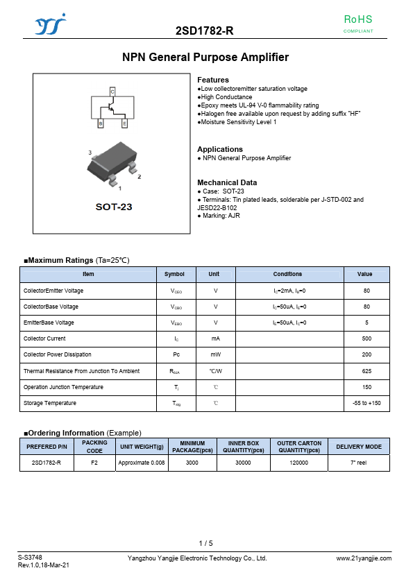 2SD1782-R RoHS COMPLIANT NPN General Purpose Amplifier.