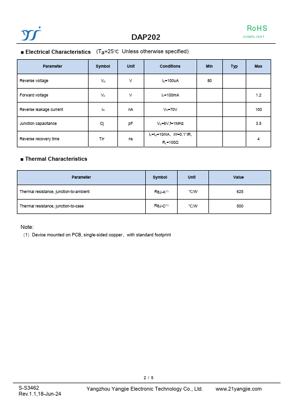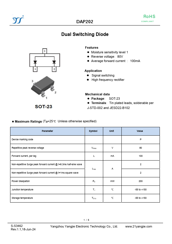 DAP202 Dual Switching Diode RoHS PLIANT.