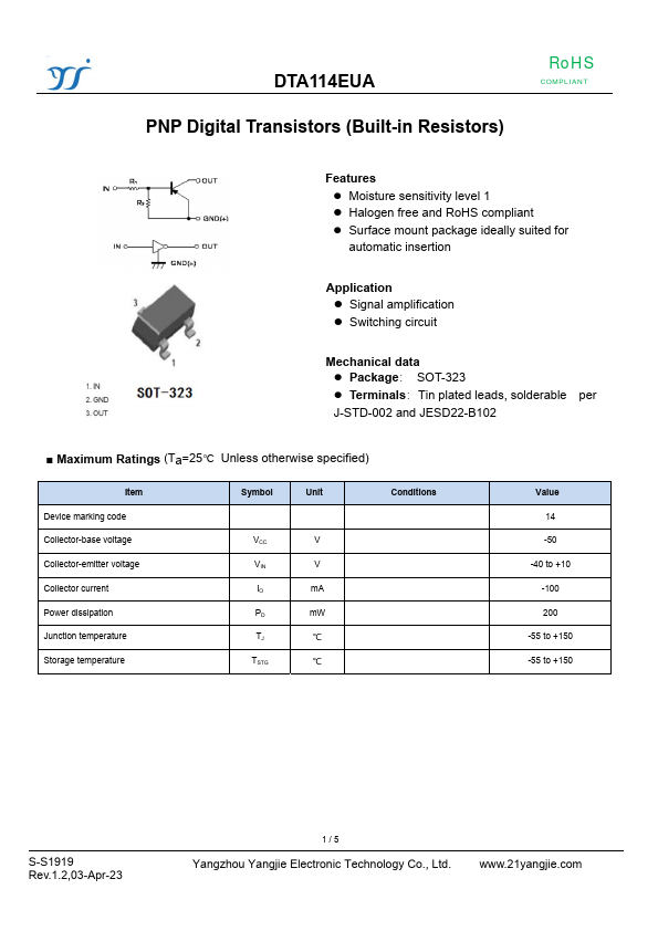 | Datasheet | DTA114EUA-YangzhouYangjie.pdf |