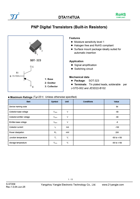 | Datasheet | DTA114TUA-YangzhouYangjie.pdf |
