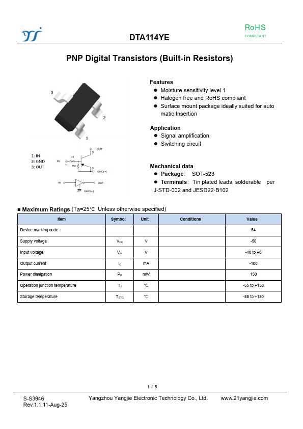 | Datasheet | DTA114YE-YangzhouYangjie.pdf |
