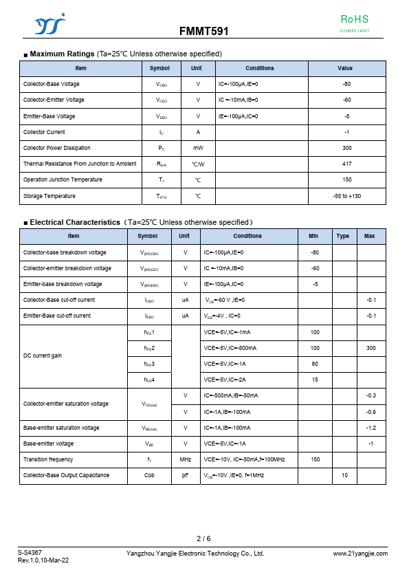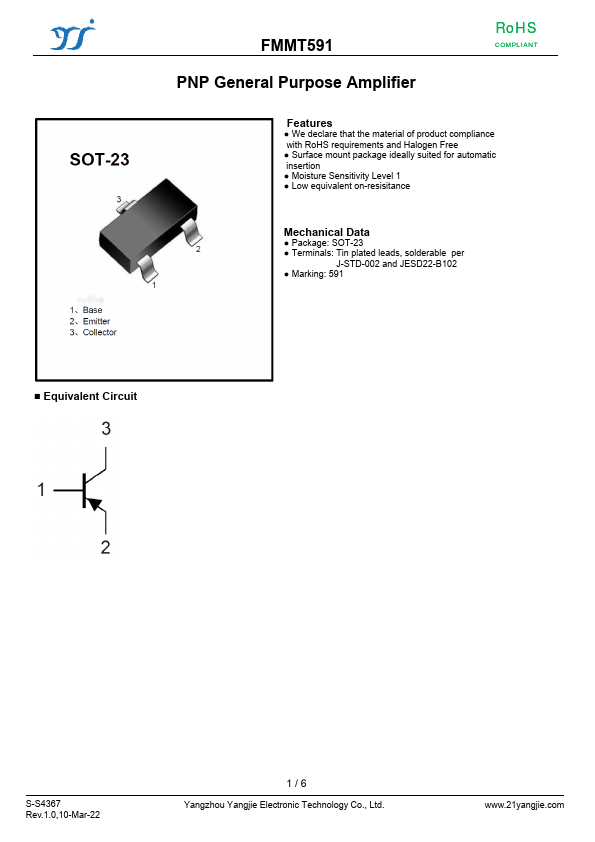Overview: FMMT591 PNP General Purpose Amplifier RoHS COMPLIANT.