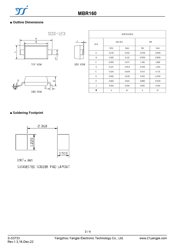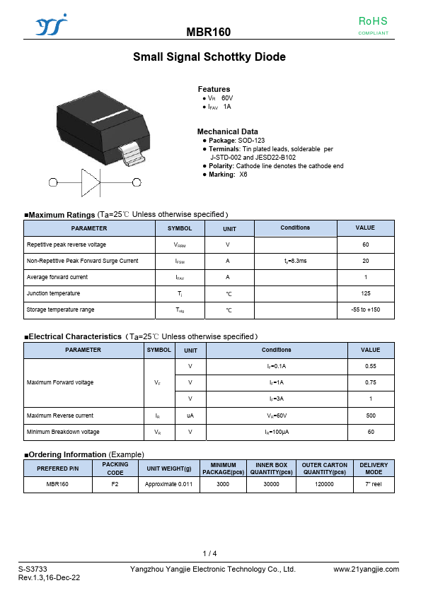 MBR160 Small Signal Schottky Diode RoHS PLIANT.