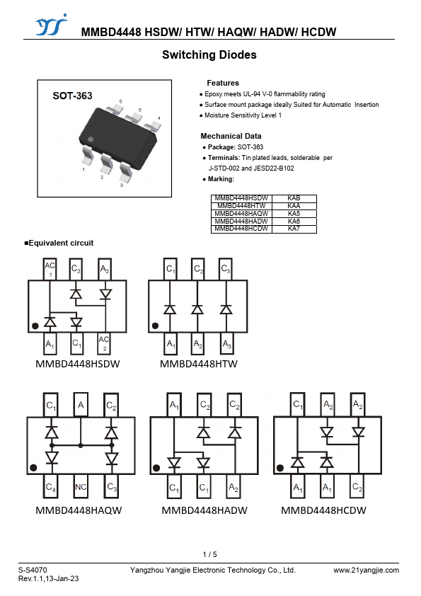 MMBD4448 HSDW/ HTW/ HAQW/ HADW/ HCDW Switching Diodes Equivalent circuit.