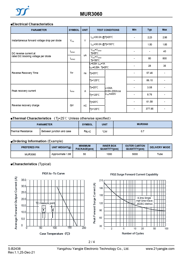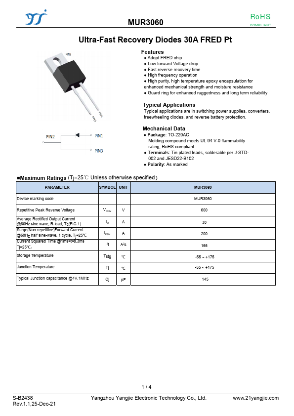 MUR3060 RoHS PLIANT Ultra-Fast Recovery Diodes 30A FRED.