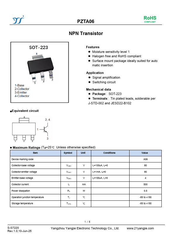 | Datasheet | PZTA06-YangzhouYangjie.pdf |