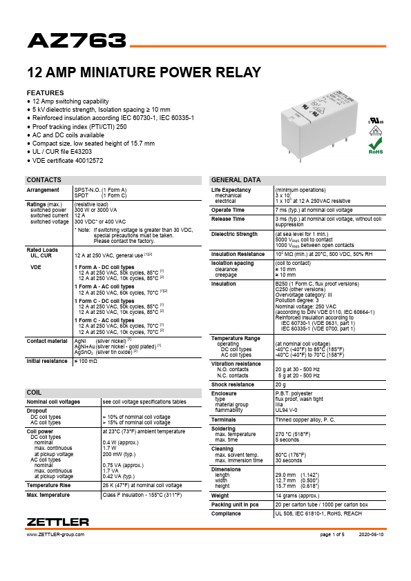 AZ763 12 AMP MINIATURE POWER RELAY.