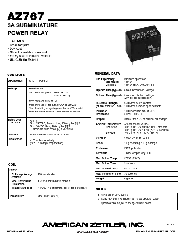 AZ767 3A SUBMINIATURE POWER RELAY.