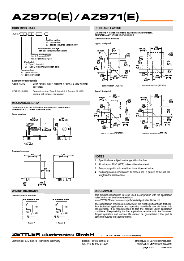 - 1 Form A and 1 Form C contacts available