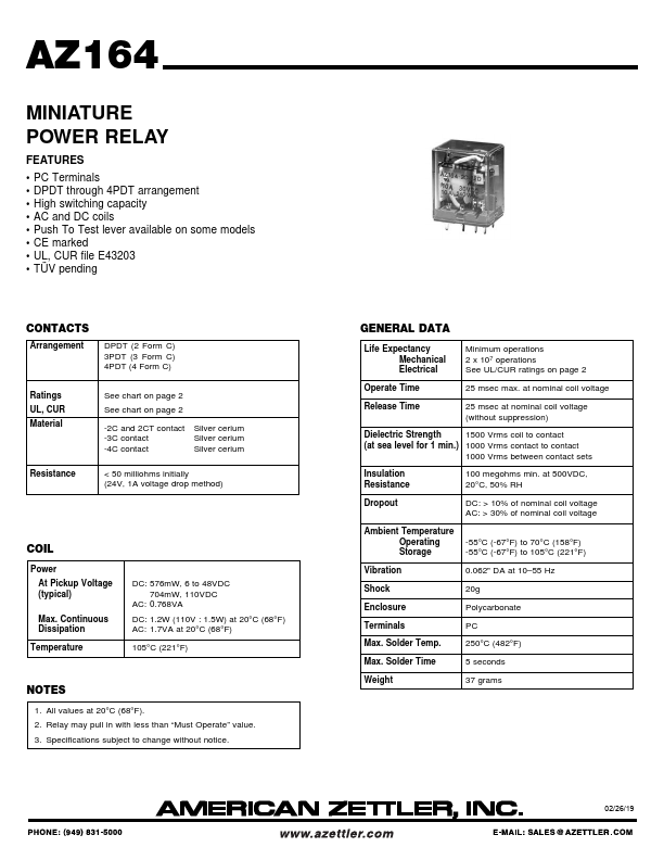 AZ164 MINIATURE POWER RELAY.