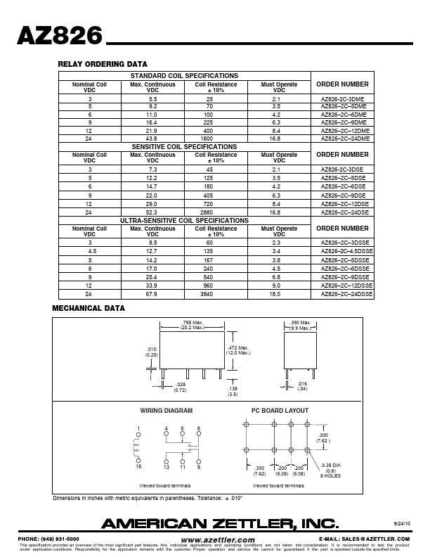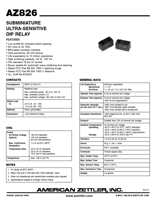 AZ826 SUBMINIATURE ULTRA-SENSITIVE DIP RELAY.