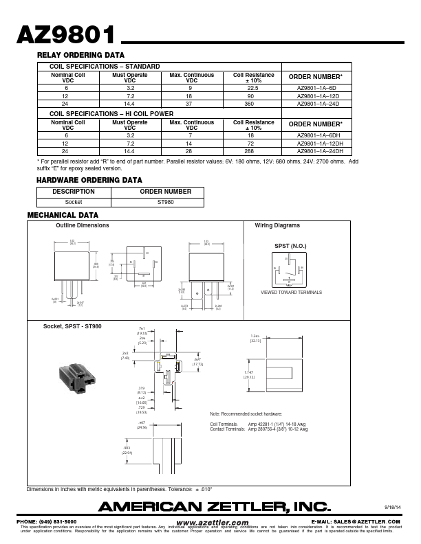 Remended socket hardware: Amp 42281-1 (1/4") 14-18 Awg Contact Terminals: Amp 280756-4 (3/8") 10-12 Awg .903 [22.94] Dimensions in inches with metric equivalents in parentheses.