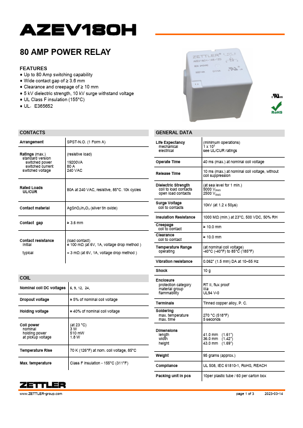 AZEV180H 80 AMP POWER RELAY.