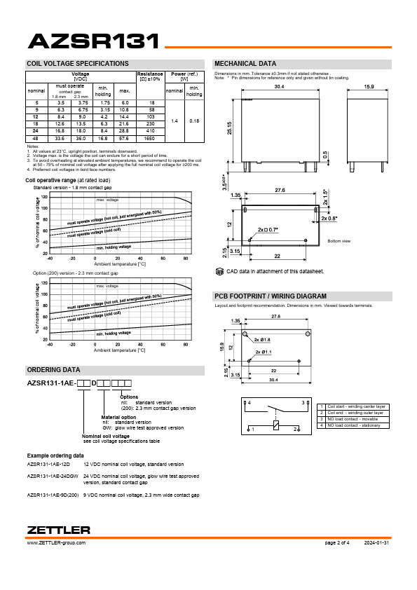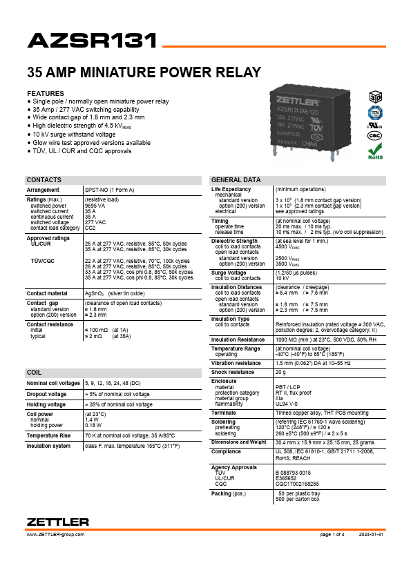 AZSR131 35 AMP MINIATURE POWER RELAY.