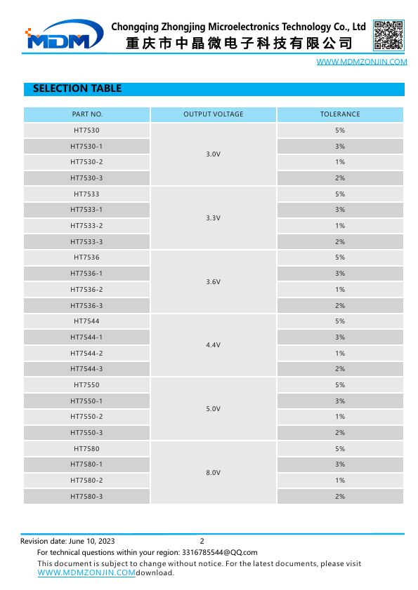Chongqing Zhongjing Microelectronics Technology Co., Ltd 重庆市中晶微电子科技有限公司 .MDMZONJIN. LOW DROP LINEAR VOLTAGE REGULATORS HT7530 THRU HT7580.